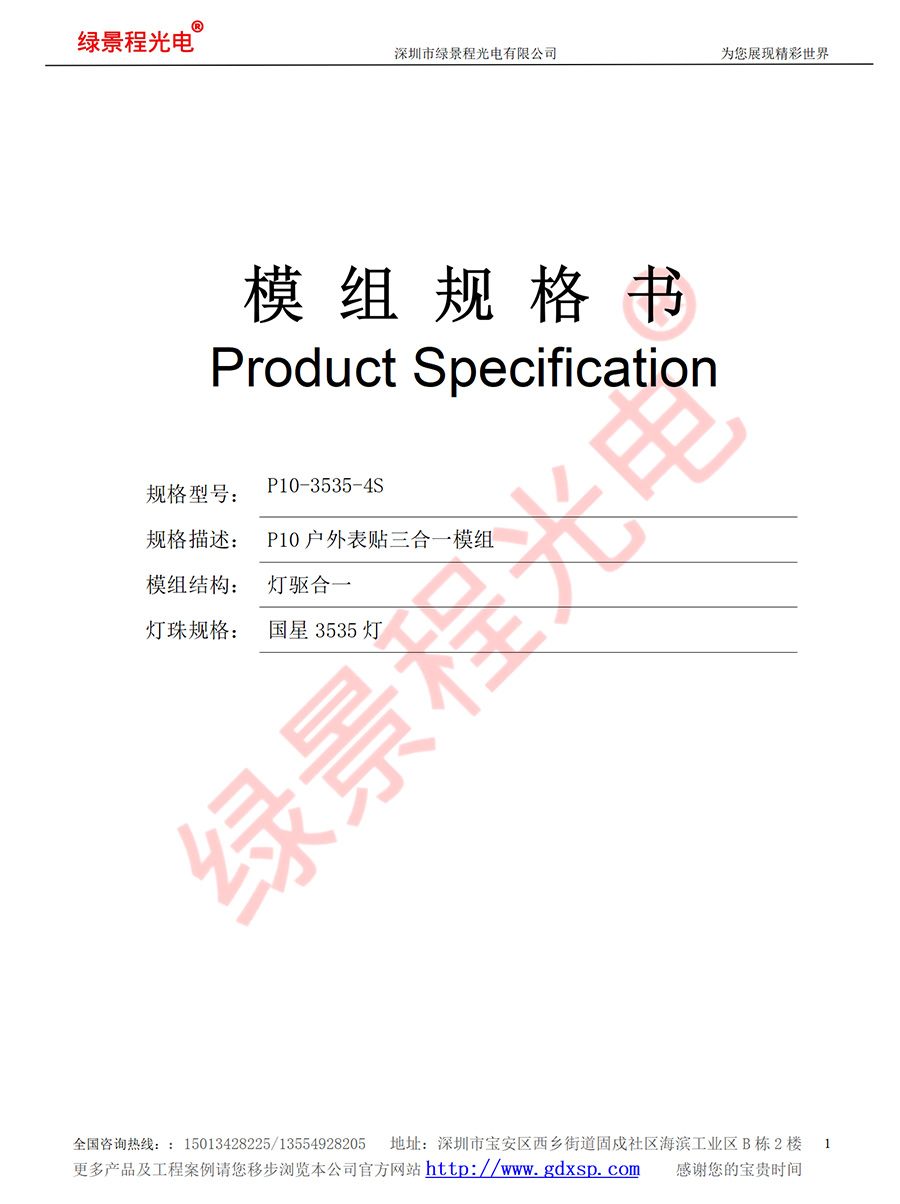 綠景程光電戶外P10-SMD3535-4S-320X160mm