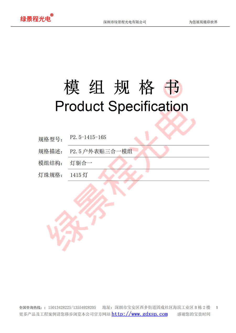 規(guī)格型號:P2.5-1415-16S