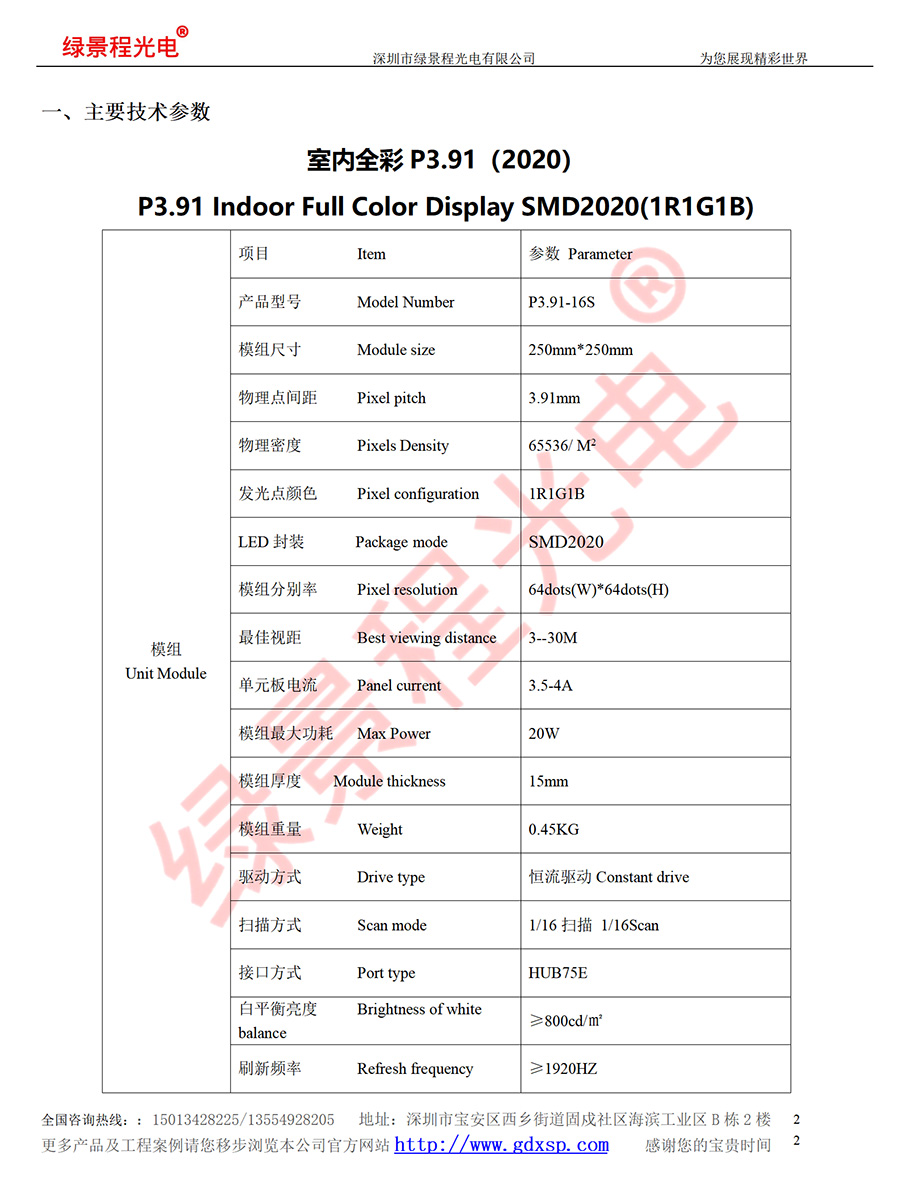 綠景程光電室內P3.91-SMD2020-16S-250X250mm