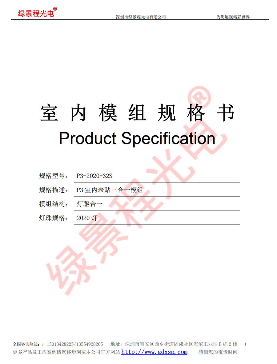 綠景程光電室內(nèi)P3-SMD2020-32S-192X192mm