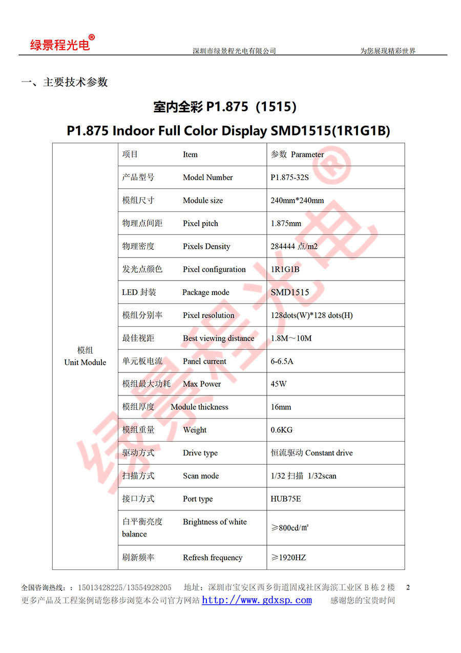 綠景程光電室內P1.875-SMD1515-32S-240X240mm