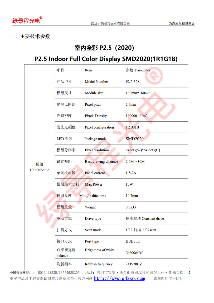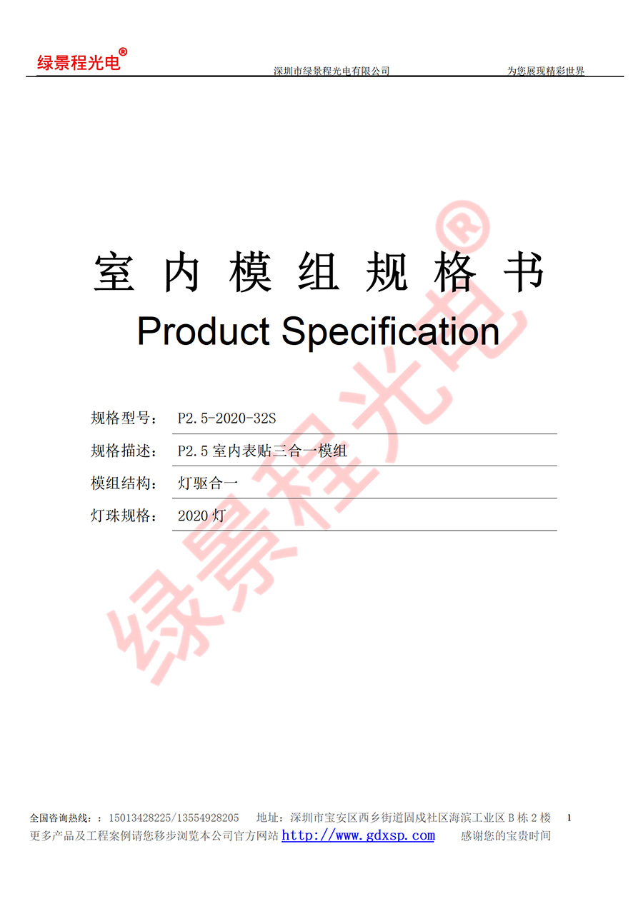 綠景程光電室內P2.5-SMD2020-32S-160X160mm