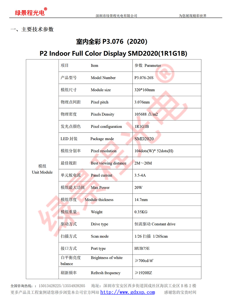 綠景程光電室內P3.076-SMD2020-26S-320X160mm