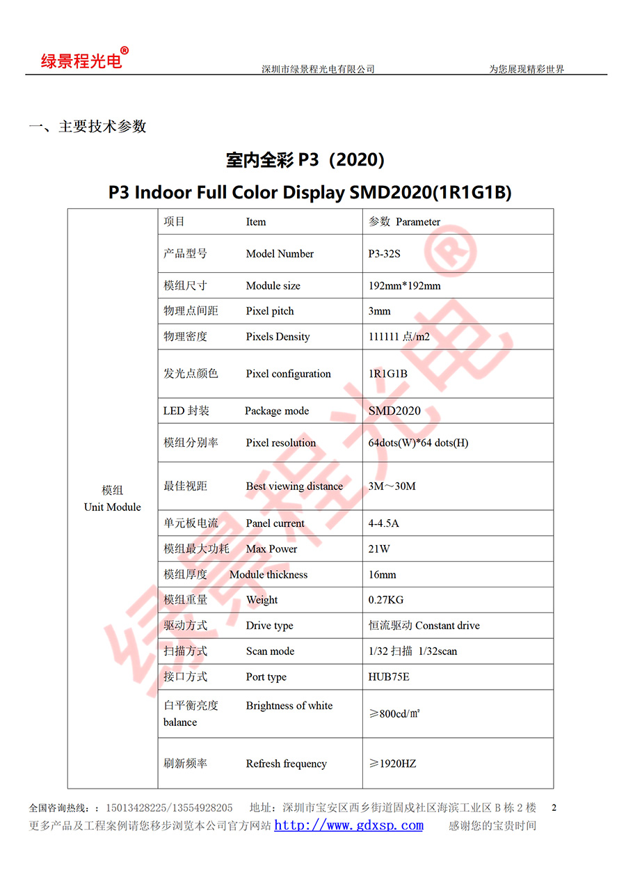 綠景程光電室內P3-SMD2020-32S-192X192mm