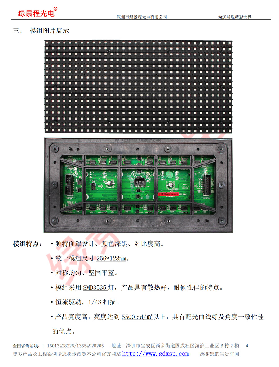 綠景程光電戶外前維護P8-SMD3535-4S-256X128mm